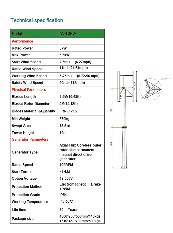 GVH-5KW függőleges tengely szélturbina