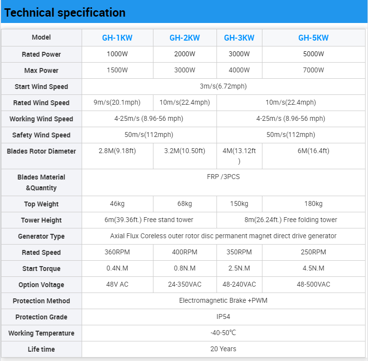 | Model | GH-1KW | GH-2KW | GH-3KW | GH-5 kW |